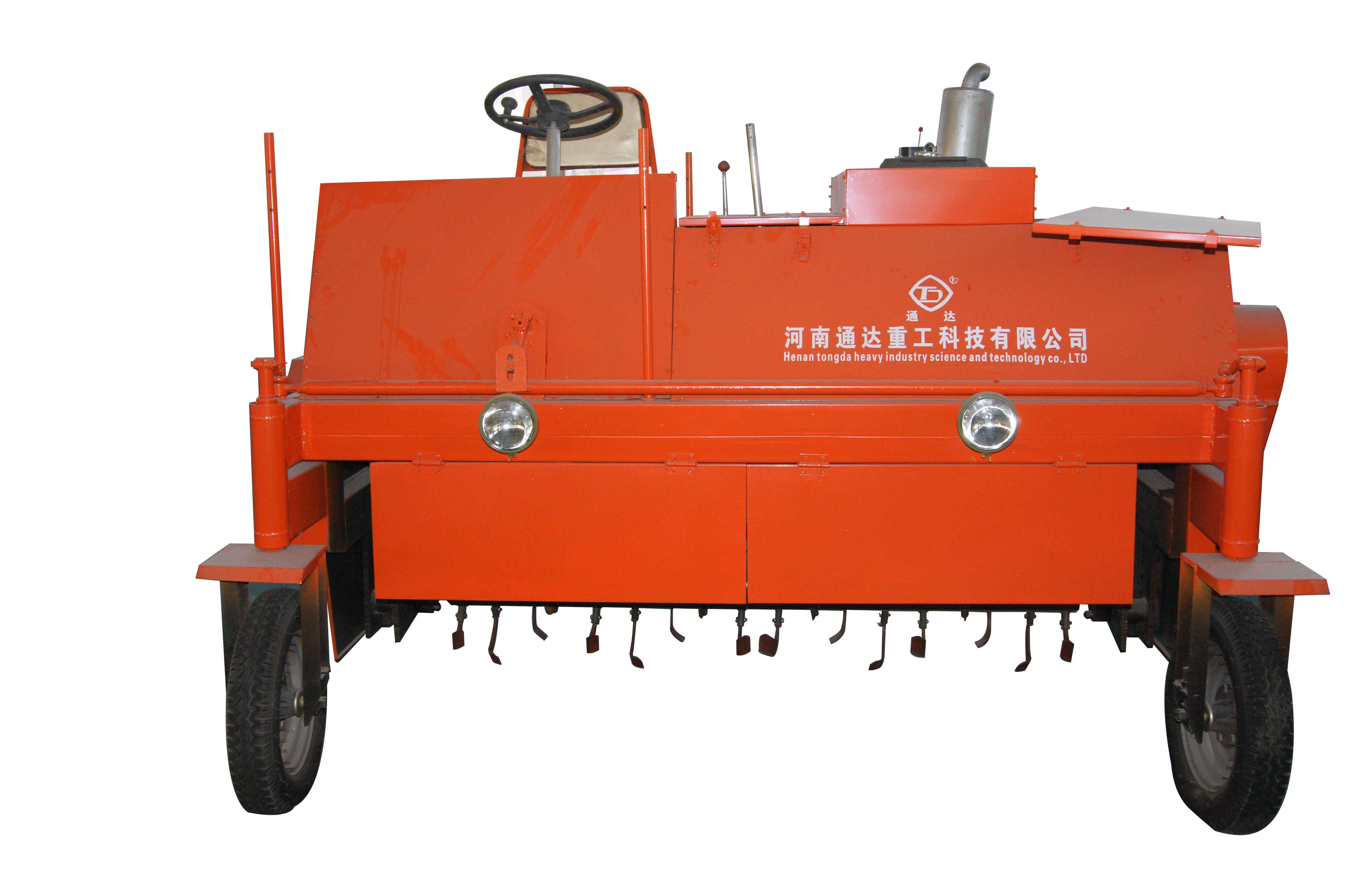 自走式翻堆機(jī)采取四輪行走設(shè)計(jì),可前進(jìn)、倒退、轉(zhuǎn)彎,由一人操控駕駛。行駛中整車騎跨在予先堆置的長(zhǎng)條形肥基上,由機(jī)架下掛裝的旋轉(zhuǎn)刀軸對(duì)肥基原料實(shí)施翻拌、蓬松、移堆,車過(guò)之后篡成新的條形垛堆,該機(jī)一大技術(shù)突破在于整合了物料發(fā)酵后期的破碎功能。隨著物料逐漸脫水,加裝破碎裝置的刀軸可有效地破碎肥料在發(fā)酵過(guò)程中形成的板塊,不僅省去了一臺(tái)粉碎機(jī),更主要的大大提高了粉碎的效率,降低了成本,從根本上解決了生產(chǎn)量受粉碎機(jī)制約的問(wèn)題。